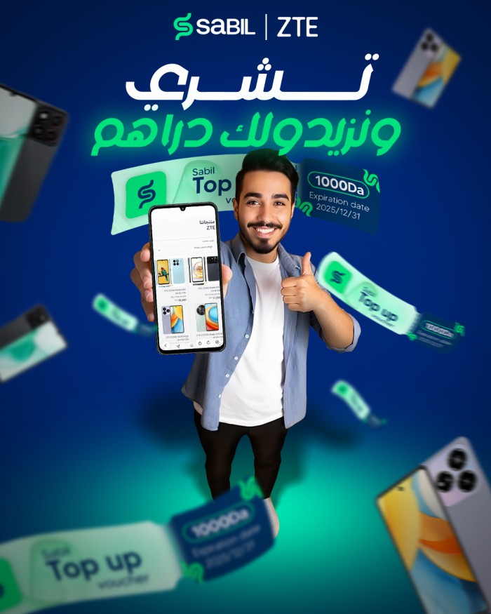 كل تيليفون ZTE تشتريه → اسكان الكود → تربح 500 دج مجانًا